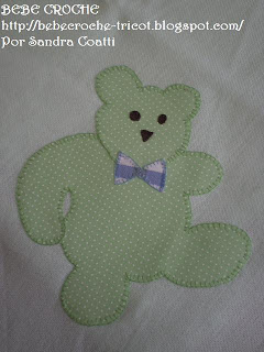Tinha esta manta de flanela,mas não tinha nada igual a cor da mantinha,então fiz em varios tons de verde e o barrado e bem simples,só lequinho de croche.